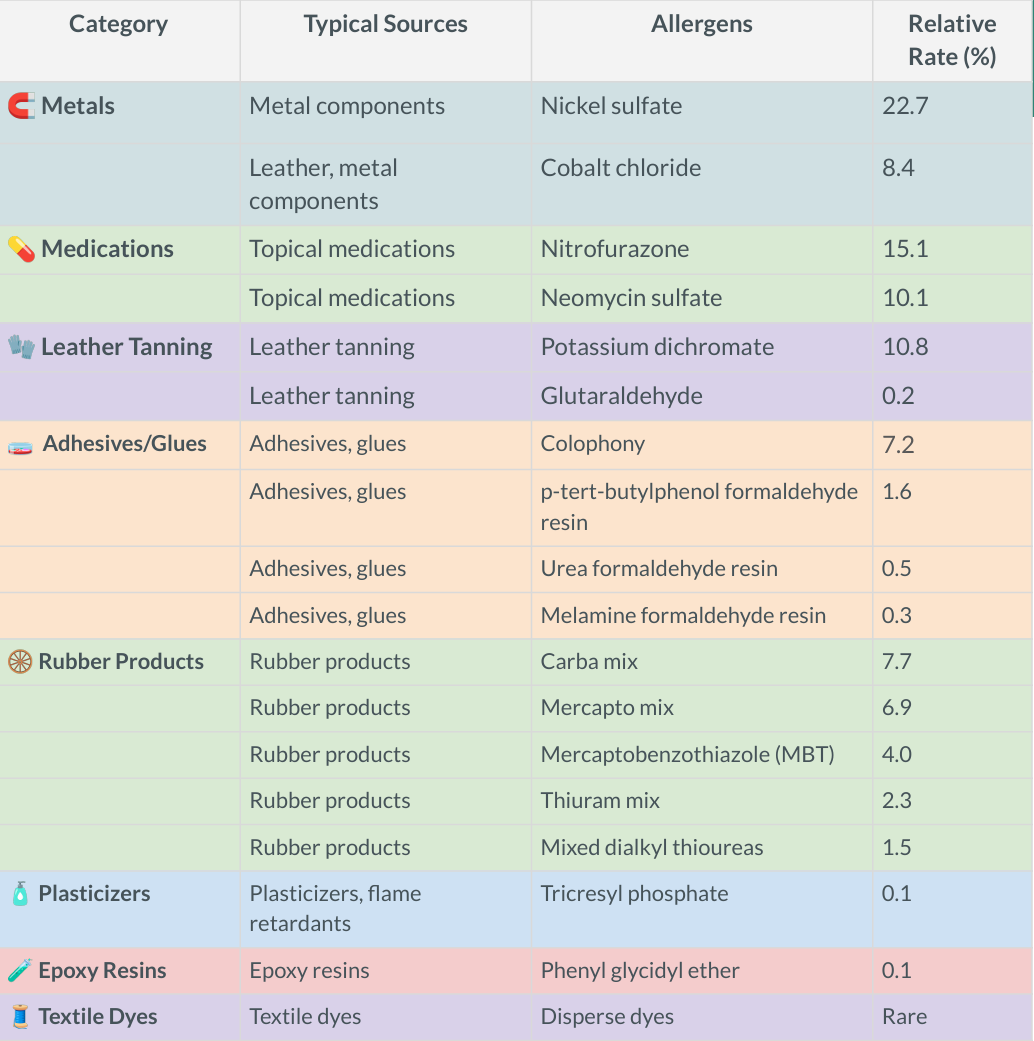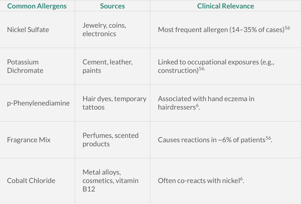 Allergens (like nickel or fragrances)